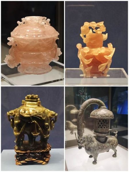 本次展览还汇集了来自南京博物院、中国大运河博物馆、苏州博物馆的二十余件精选珍贵文物。“东汉初错银铜牛灯” 精巧的工艺,无不彰显古人的卓越智慧;“清中期掐丝珐琅鎏金太平有象熏炉” 华丽精美,展现出当时登峰造极的制器水平;“清嘉庆阿克当阿款青花八吉祥纹三足炉” 神韵古朴,静静见证着历史的沧海桑田;还有饱含文人雅致情趣的 “象牙雕竹林七贤笔筒” 等诸多国家等级文物,每一件都是历史的生动见证者,都承载着深厚的历史文化底蕴,等待着师生们去细细探寻、品味。