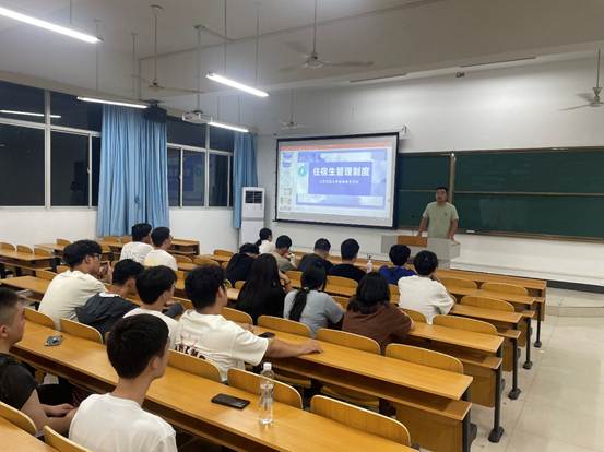 会上,学工办孙老师结合校园住宿管理规定及过往经验,向全体住宿新生提出明确要求。他强调,新生需严格约束自身行为,自觉遵守学校宿舍管理条例及各项安全防范制度,从源头上防范火灾、坠物等各类人身伤害事故发生;同时,要在宿舍内践行团结友爱的相处准则,互帮互助、包容理解,共同营造积极向上、和谐融洽的宿舍文化氛围。在互动环节,孙老师耐心倾听新生提出的住宿相关疑问,逐一细致解答,切实解决新生的后顾之忧。