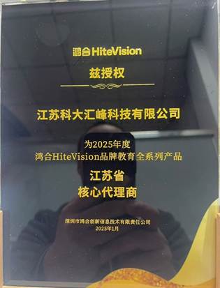 江苏科大汇峰科技有限公司再迎合作喜讯:2025年4月,获深圳鸿合授予的“2025年度鸿合HiteVision品牌教育全系列产品江苏省核心代理商”资质。