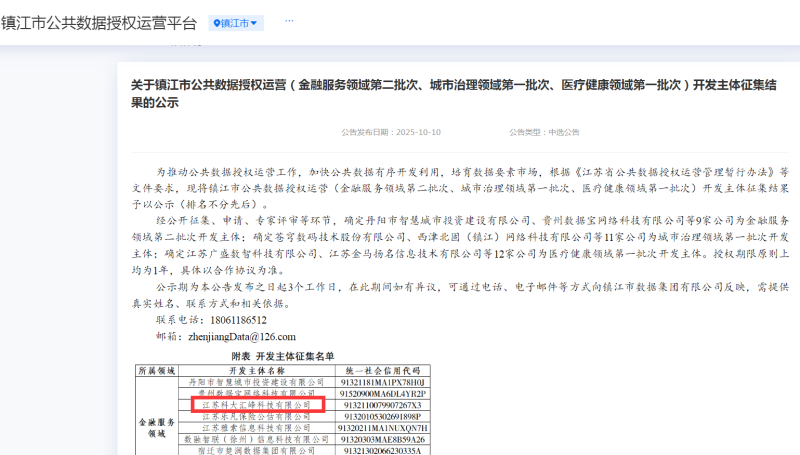 近日,我司成功入围镇江市公共数据授权运营(金融服务领域)开发主体名单,为镇江市推动公共数据授权运营工作,加快公共数据有序开发利用,培育数据要素市场舔砖加瓦。