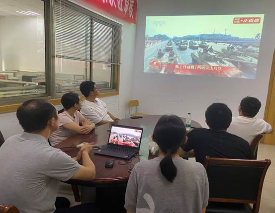 上午9时,公司党员们齐聚会议室,怀着崇敬的心情等待阅兵仪式的开始。当习近平总书记发表重要讲话时,大家认真聆听,深刻领会总书记关于铭记历史、缅怀先烈、珍爱和平、开创未来的重要指示精神。